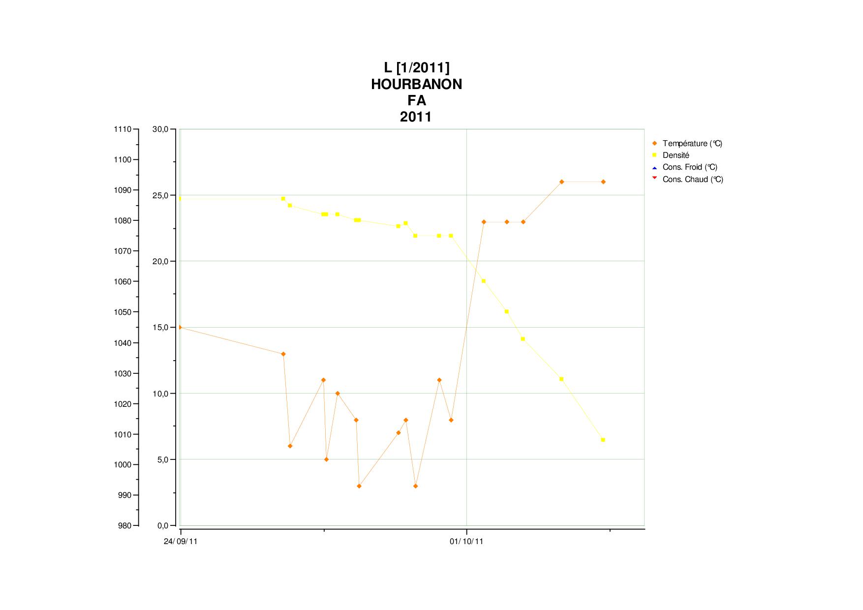 En pleine fermentation, voici la courbe de suivi de ma cuve de Cabernets Francs.