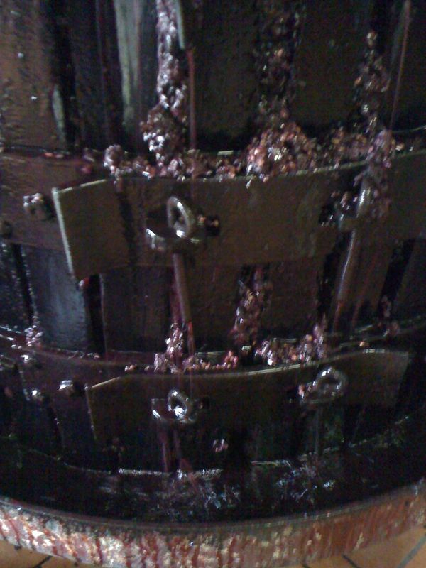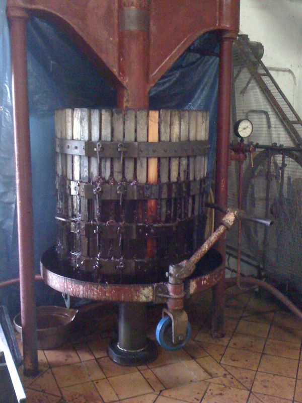 Mon pressoir date de 1932 et ce système est celui qui est le plus lent mais qui produit les meilleurs vins de presse